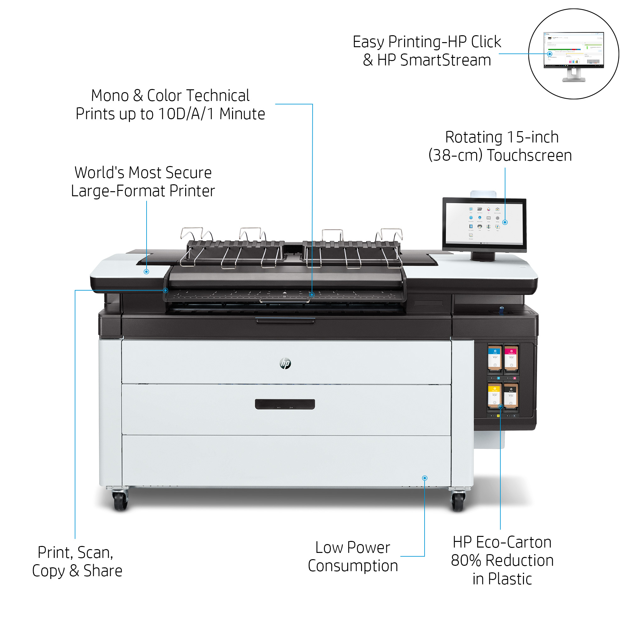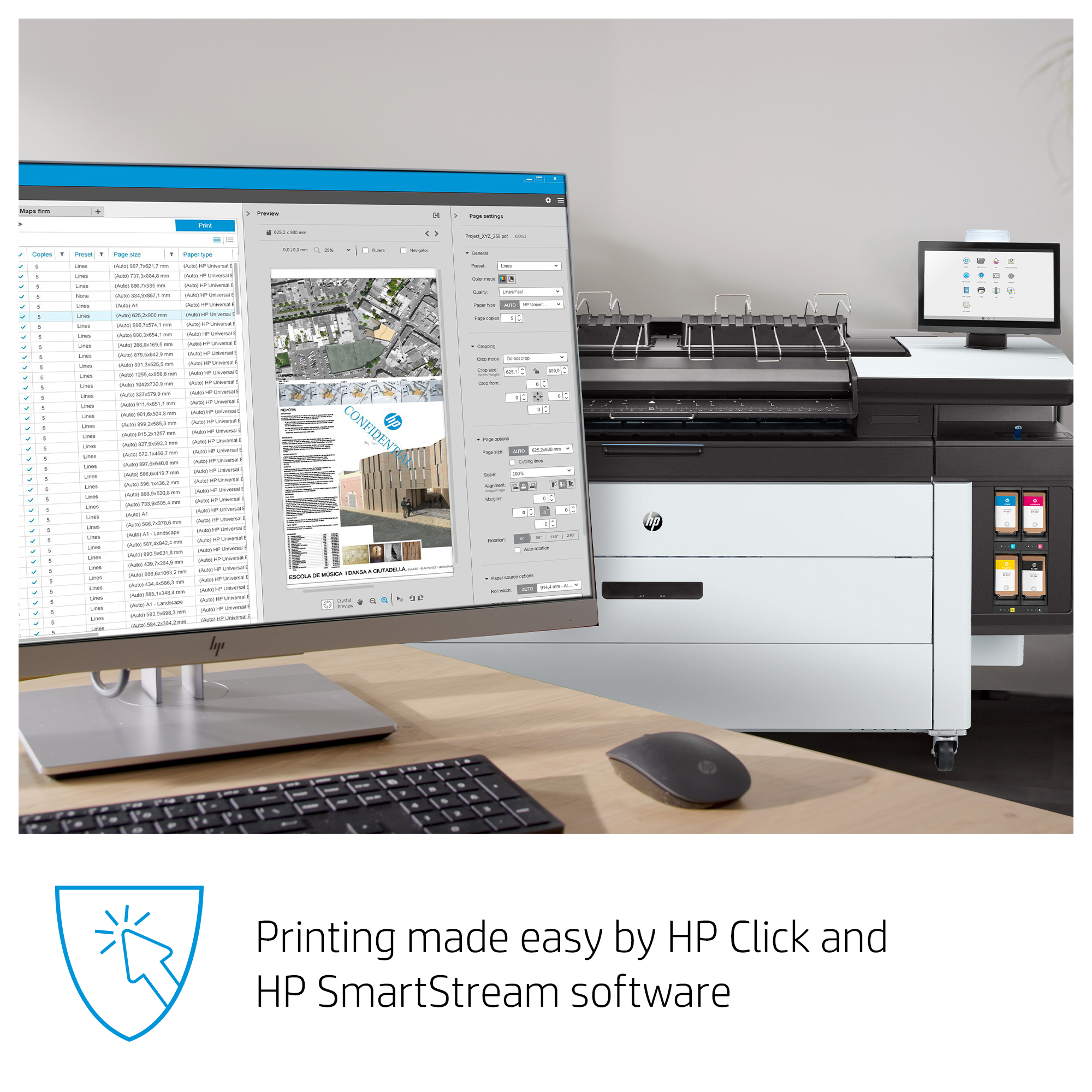 Easy printing and workflow efficiency with HP Click, HP SmartStream software.