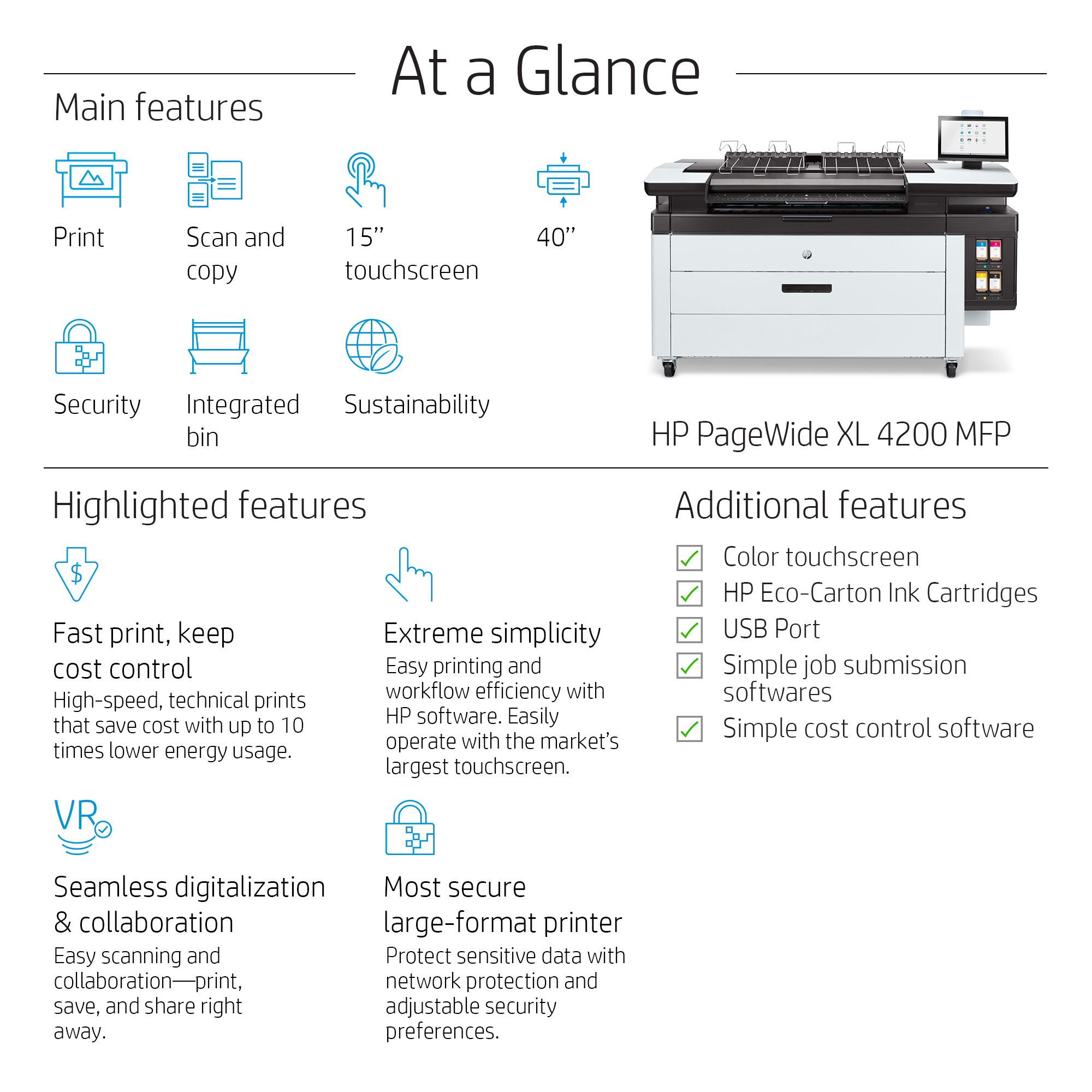 Easy collaboration—access personal/network group folders at touchscreen; print, save, and share right away.